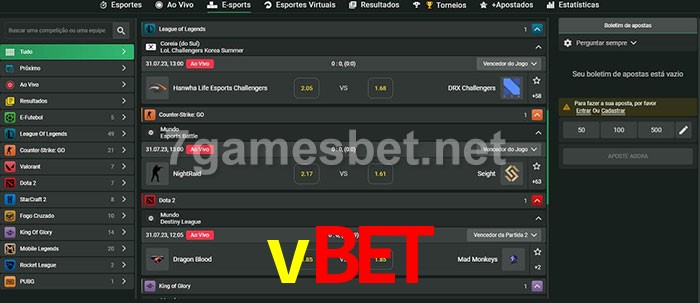 O vbet oferece uma grande seleção de opções de apostas em e-sports com probabilidades competitivas
